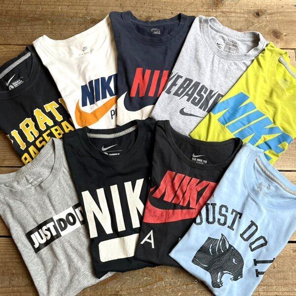1点物◆ナイキNIKE水色JUST DO ITプリントTシャツ古着メンズMLレディースOKアメカジ90sストリート/スポーツブランド半袖ポロシャツ372830