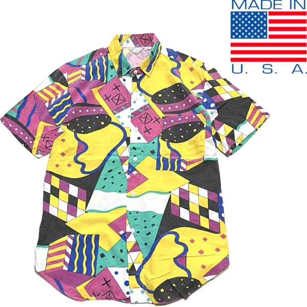 1点物◆USA製ビンテージ80s半袖アロハシャツ柄シャツ古着メンズL/XLレディースOKアメカジ90sストリート/スポーツUSハワイアン黄色372840