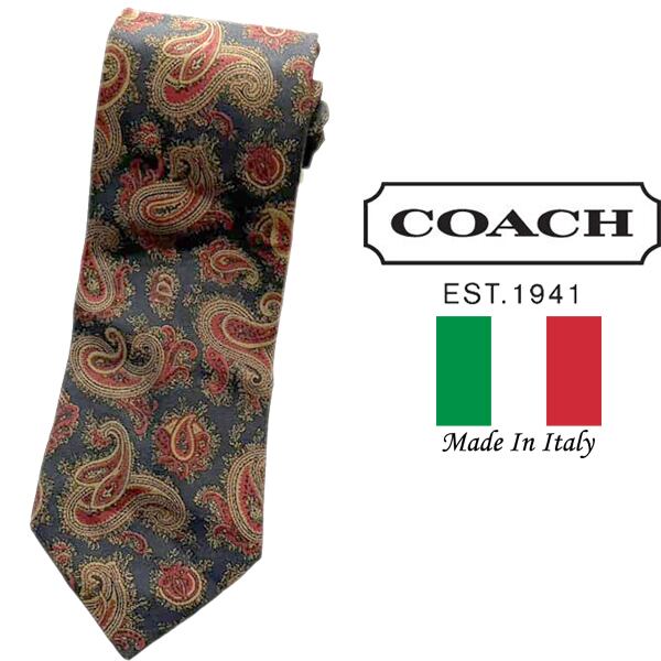 1点物◆イタリア製オールドコーチCOACH黒シルク柄物ネクタイ古着メンズレディースOK90sストリート/スポーツMix小物ブランド色エンジ372854