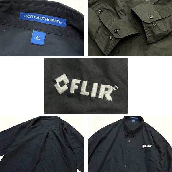 1点物◆FLIR刺繍ロゴ長袖PORTワーク黒シャツ古着メンズXLレディースOKアメカジブランド90sストリート/スポーツMixブランド/フリアー372885