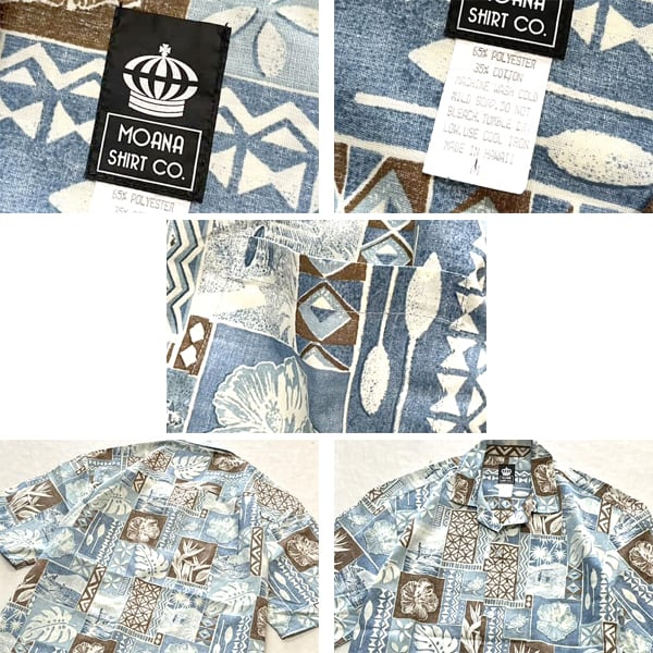 1点物◆USA製ビンテージ裏地アロハシャツ柄シャツ古着メンズMLレディースOKアメカジ90sストリート/スポーツ/ハワイアン青カスレ中古372927