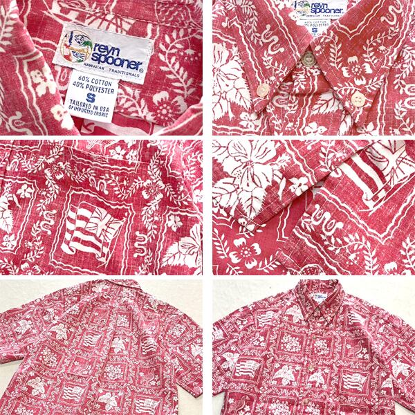 1点物◆USA製ビンテージ90sレインスプーナー裏地アロハシャツ古着メンズSMレディースOKアメカジ90sストリート/スポーツ赤ハワイアン372929