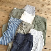 形: ワイドジョガー、 素材: 55%リネン45%コットン、 色: オリーブ。
