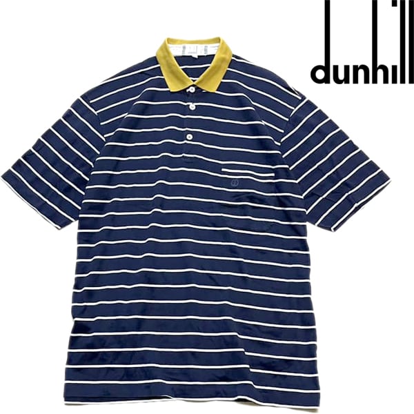 1点物◆イタリア製ダンヒル紺ボーダー柄ポロシャツ古着LメンズXLレディースOKアメカジ90sストリート/スポーツMixブランドTシャツ中古372982