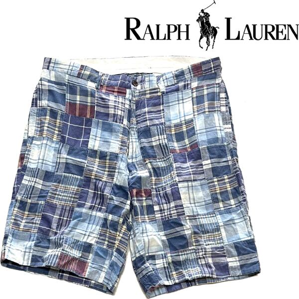 1点物◆ラルフローレンPOLOパッチワークショートパンツ古着メンズ36XLレディースOKアメカジ90sストリートスポーツ中古ブランド半パン373085