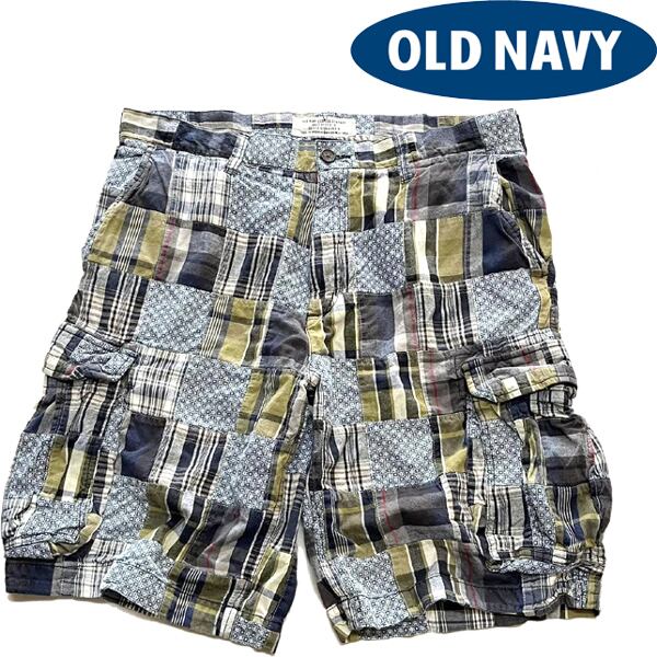 1点物◆オールドネイビーONパッチワークカーゴショートパンツ古着メンズ36XLレディースOKアメカジ90sストリートスポーツ中古ブランド373083
