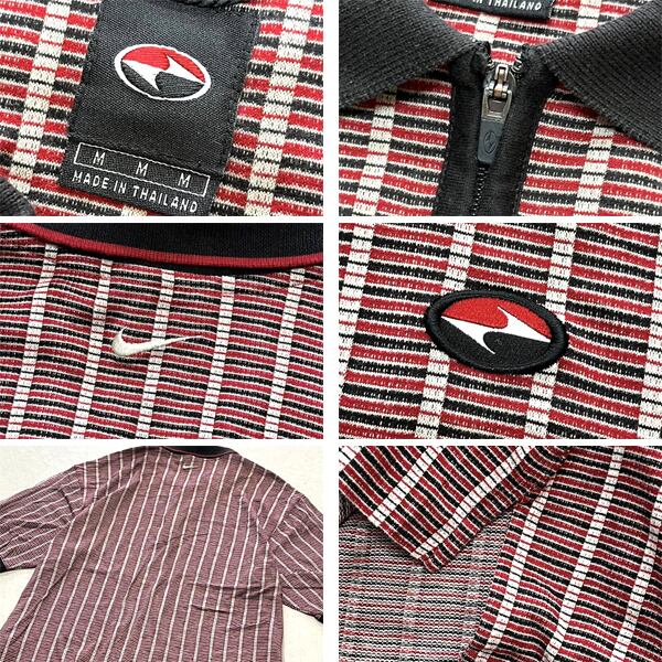 1点物◆ナイキ黒赤NIKEハーフジップ半袖ポロシャツ古着メンズMLレディース/アメカジブランド90sストリート/スポーツブランドUSゴルフ373161