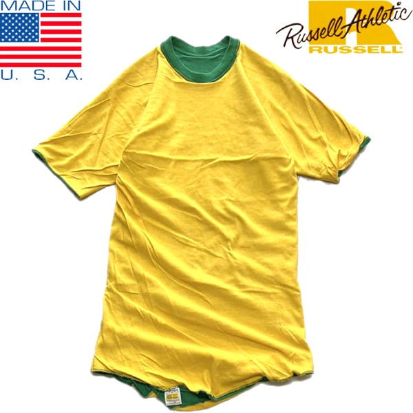 1点物◆USA製ビンテージ70sラッセル緑リバーシブルTシャツ古着メンズXLレディースOKアメカジ90sストリートスポーツブランド金タグ373178