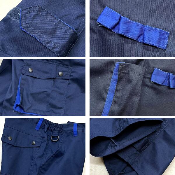 形: ストレート、 素材: 65%ポリ 35%コットン、 色: 紺。