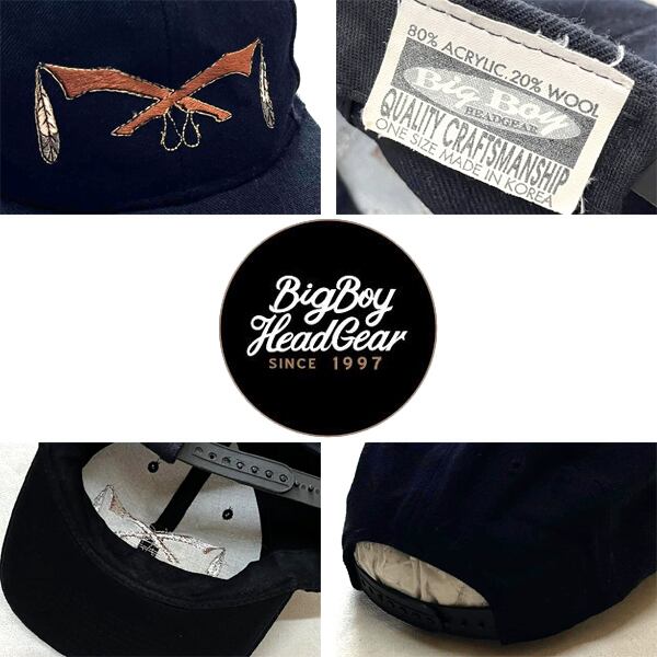 1点物◆インディアン黒BIG BOY帽子キャップ古着メンズレディースOKアメカジ90sストリート/スポーツ中古ブランド企業ハット刺繍ロゴ373211
