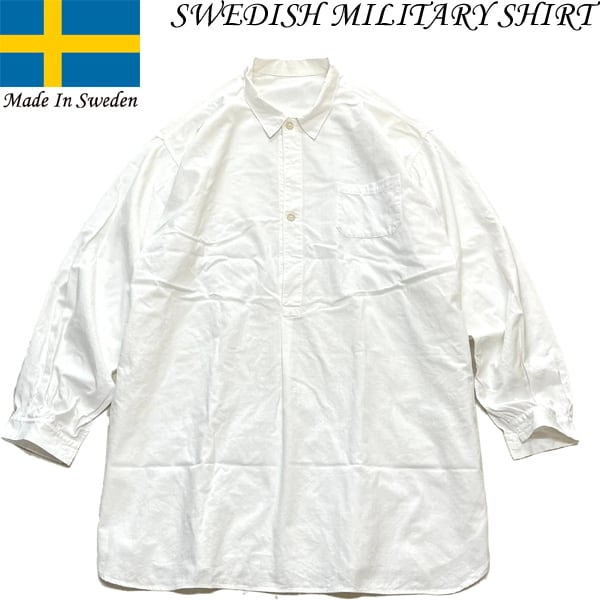 1点物◆スウェーデン軍ビンテージ60sグランパシャツ白シャツワンピ古着メンズXLレディースOKアメカジ90sストリート/スポーツ実物軍物373240