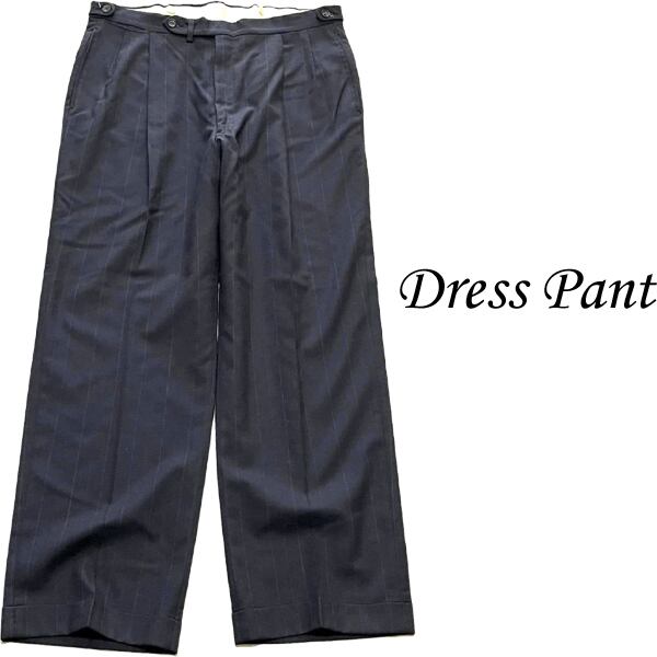 1点物◆ピンストライプ濃紺スラックスドレスパンツ古着メンズXLレディースOK90sストリート/スポーツMixワイドパンツ中古チノパン黒373330