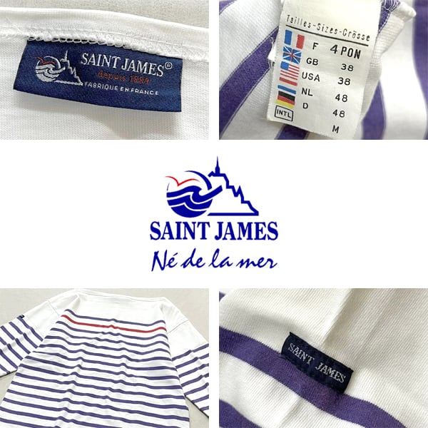 1点物◆フランス製セントジェームス紫ボーダー長袖ロンTシャツ古着メンズMレディースOKアメカジブランド90sストリートスポーツ中古373420