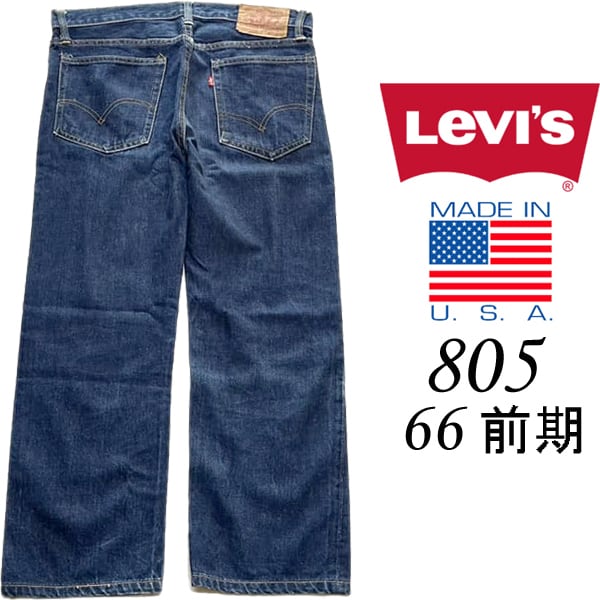 1点物◆USA製ビンテージ70sリーバイス66前期805濃紺ジーンズ古着メンズ32レディースOKアメカジ90sストリート/スポーツMix赤耳デニム373421