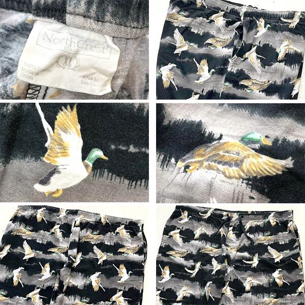 1点物◆ビッグサイズ鳥ダック黒カモ柄パジャマパンツ古着メンズXLレディースOKアメカジ90sストリート/スポーツブランドUSストレート373433