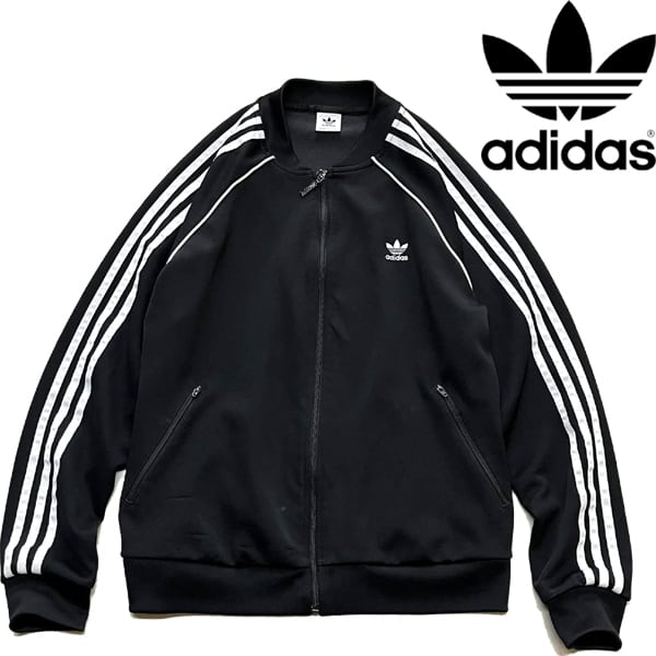 1点物◆アディダス3本ラインジャージ黒白トラックジャケット古着メンズMLレディースOKアメカジ90sストリート/スポーツブランド中古373450