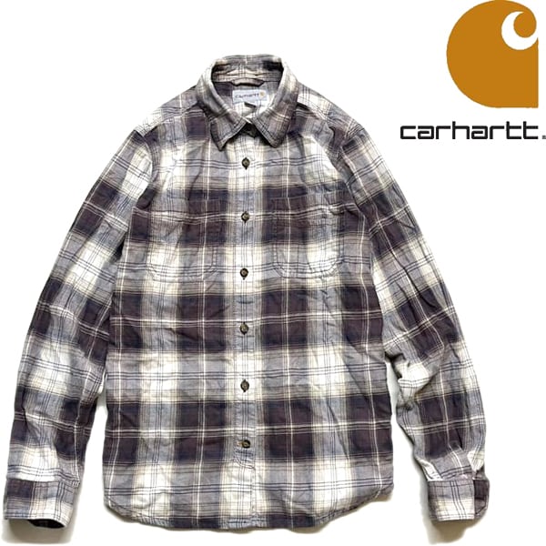 1点物◆カーハートCARHARTTネルシャツ長袖チェックシャツ古着メンズレディースOKアメカジ90sストリートスポーツUSAワークブランド茶373530