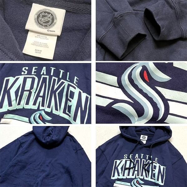 1点物◆シアトルNHLクラーケン紺スウェットパーカー古着メンズMLレディースOKアメカジ90sストリート/スポーツトレーナーUSホッケー373536