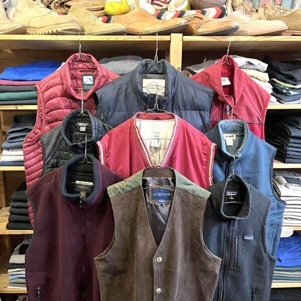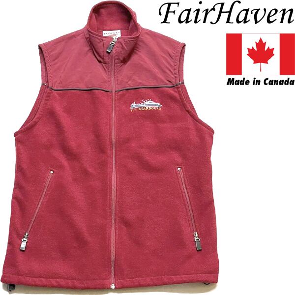 1点物◆カナダ製エンジ赤フリースベスト中古ジレ古着メンズMLレディースOKアメカジ90sストリートスポーツアウトドアFAIRHAVENブランド37345