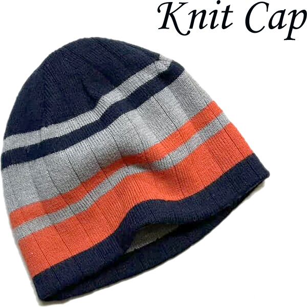 1点物◆オレンジ紺ボーダー柄ビーニー帽子ニットキャップ古着メンズレディースOKアメカジ90sストリート/スポーツUSAワークブランド373576