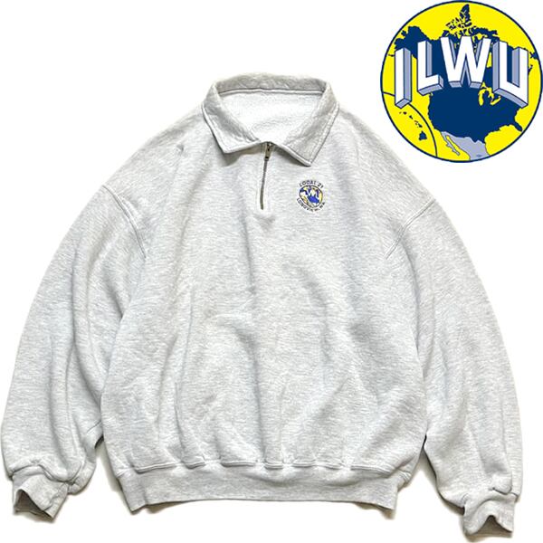 1点物◆ハーフジップILWUビッグサイズ襟グレースウェット古着メンズXXLレディースOKアメカジ90sストリート/スポーツトレーナブランド373588