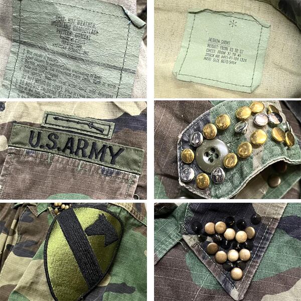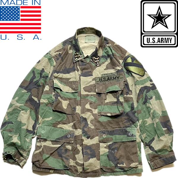 1点物◆実物アメリカ軍スタッズ迷彩柄ミリタリージャケット古着メンズMLレディースOK90sストリートM65米軍ウッドランド放出品US鋲373601