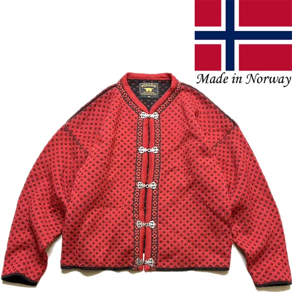 1点物◆ノルウェー製ノルディック赤ニットセーターカーディガン古着メンズレディースOKアメカジ90sストリート/スポーツ/カウチン中古272637