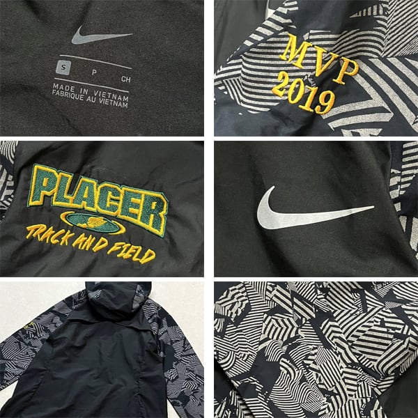 1点物◆ナイキNIKEナイロンジャケット黒柄パーカー古着メンズレディースOKアメカジ90sストリート/スポーツ/フードアウタートレーナー373644