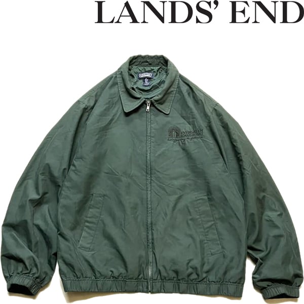 1点物◆ランズエンド深緑スエードタッチMLブルゾンジャケット古着メンズXLレディースOKアメカジ90sストリートブランドワークアウター373697