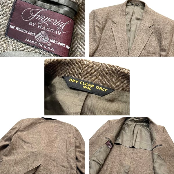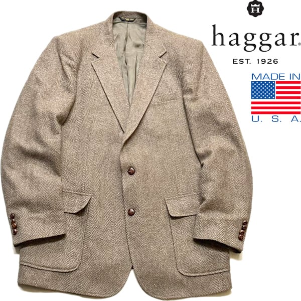 1点物◆USA製HAGGAR茶ウールツイードジャケット古着メンズ44XXLレディースOKアメカジ90sストリート/スーツブレザーUSブランド中古373702