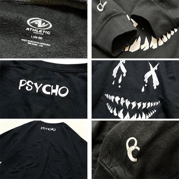1点物◆サイコPSYCHO黒プリントスウェット古着LメンズXLレディースOKアメカジ90sストリート/スポーツトレーナー中古ブランドATHLETIC373766