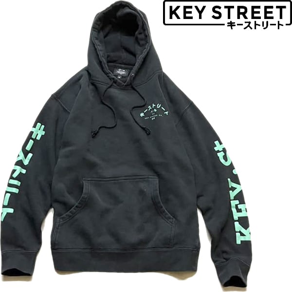 1点物◆キーストリートKAY St黒スウェットパーカー古着メンズMLレディースOKアメカジ90sストリート/アウトドア中古スケートブランド373783