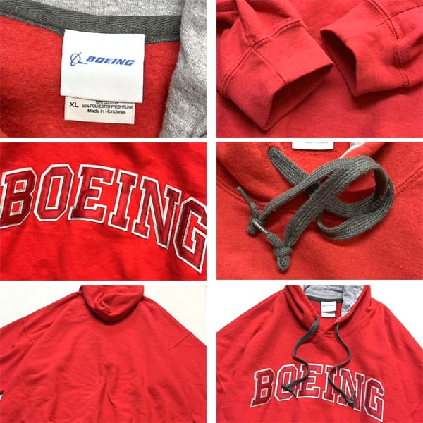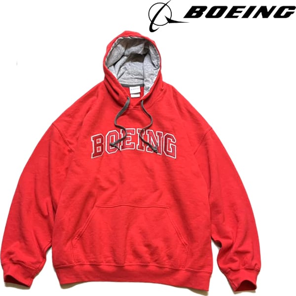 1点物◆ボーイングBOEINGロゴ赤スウェットパーカー古着メンズXLレディースOKアメカジ90sストリート/アウトドア企業ブランド飛行機373778