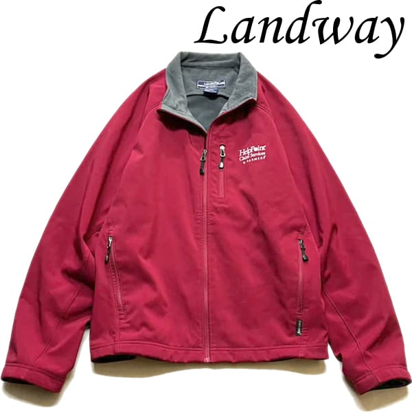 1点物◆Landwayエンジ色ナイロンフリースジャケット古着メンズL/XLレディースOKアメカジ90sストリート中古ショートアウターブランド373827