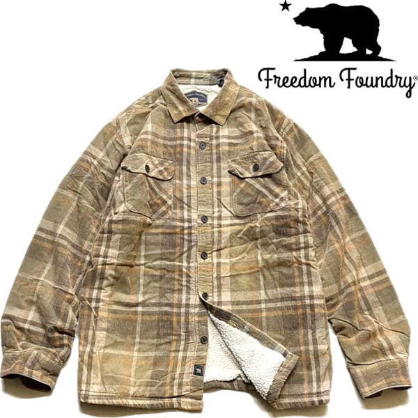 1点物◆FREEDOMボア裏地チェック柄コーデュロイシャツジャケット古着メンズMLレディースOKアメカジ90sストリート/スポーツUSブランド373843