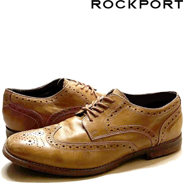 1点物◆ロックポート茶ウィングチップ革靴レザーシューズ古着メンズ27.5レディースOKアメカジ90sストリート中古ブローグUSAブランド373856