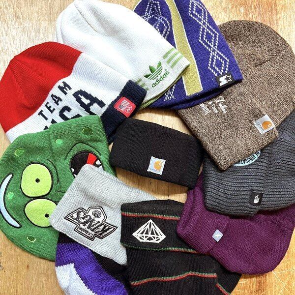1点物◆カーハート黒ブランドロゴ中古ヘアバンド/ニット帽ニットキャップ古着メンズレディースOKアメカジ90sストリート/スポーツ帽子373900