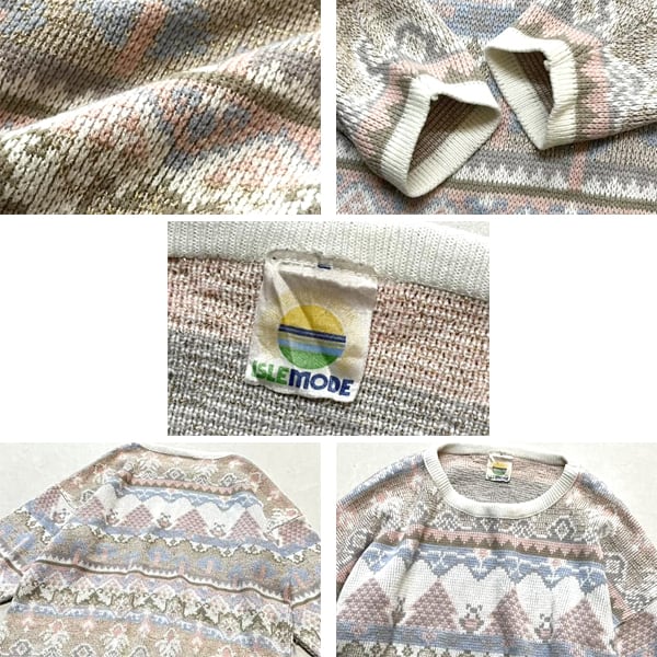 1点物◆ビンテージ80s金ラメ柄物ニットセーター古着メンズレディースOKアメカジ90sストリート/スポーツ/カウチンUSブランドIsle Mode373913 | 古着屋カチカチ 東京都北区 JR王子駅前で実店舗展開中 通販もOK Tokyo Japan