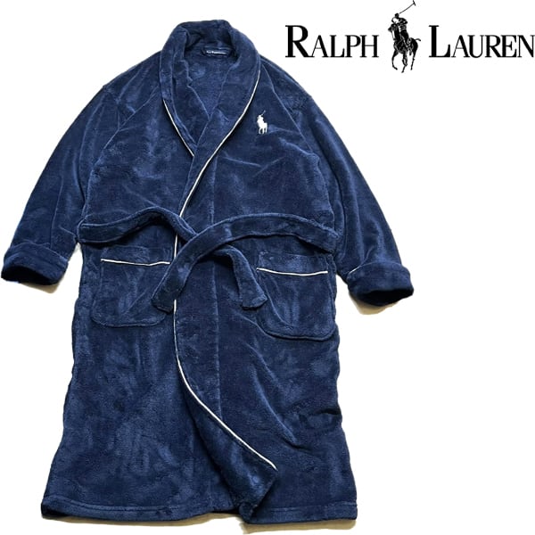 1点物◆ラルフローレンPOLOガウン紺フリースコート古着メンズレディースOKアメカジ90sストリート/スポーツ/ブランドXXLロングコート373926