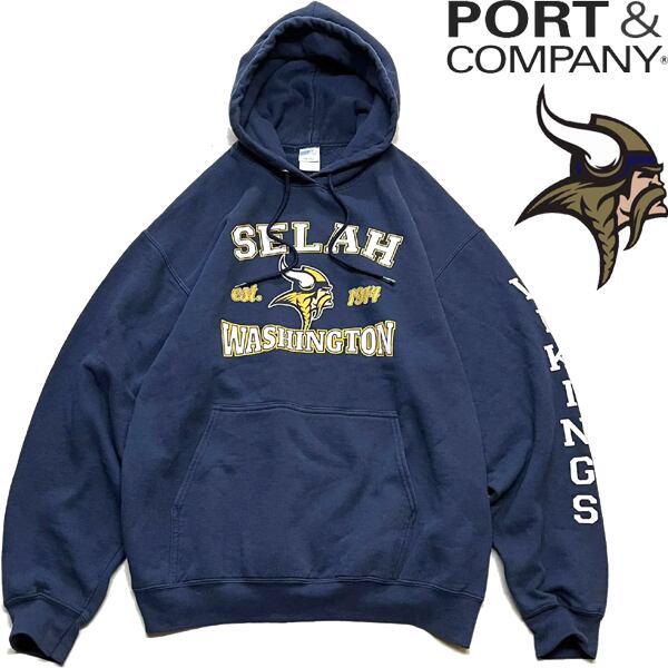 1点物◆SELAHバイキングス袖プリントスウェットパーカー古着メンズL/XLレディースOKアメカジ90sストリート/スポーツ紺トレーナー野球348011