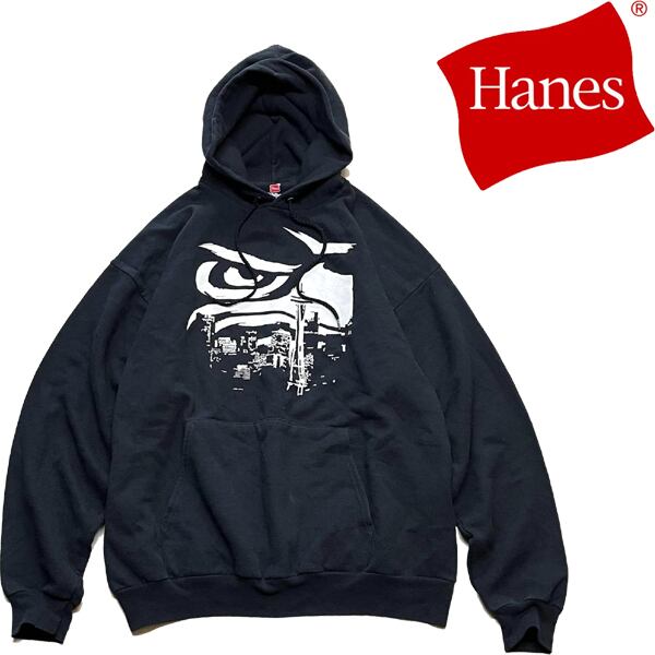 1点物◆ヘインズHanesシーホークス黒スウェットパーカー古着メンズXLレディースOKアメカジ90sストリート/スポーツトレーナーアメフト348008