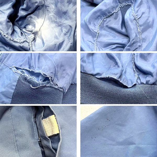 中古 使用感あり (裏地裾ステッチほつれ穴、 裏地ワキ周辺にリペア跡に色あせ感、 左腕上部に点々ヨゴレ)。 (写真参照)
