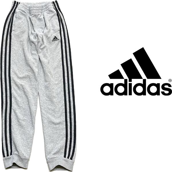 1点物◆アディダス3本ラインスウェットパンツ古着ボーイズLメンズSレディースOKアメカジ90sストリート/スポーツブランドトレーナー灰348102