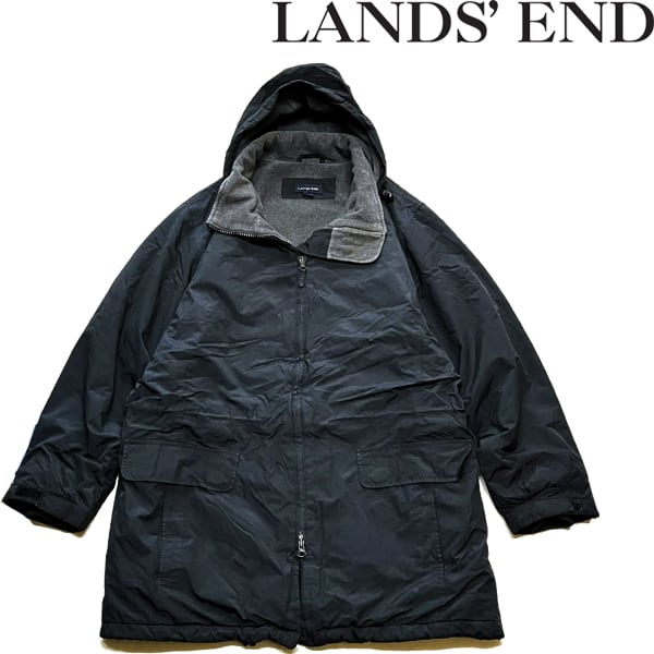1点物◆ランズエンド裏地フリース黒マウンテンパーカー古着メンズレディースOKアメカジ90sストリート/アウトドア/ナイロンジャケット348142