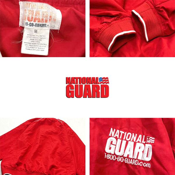 1点物◆National GUARD赤プルオーバー中古ナイロンジャケット古着メンズMLレディースOKアメカジ90sストリート/スポーツアウター軍物348210