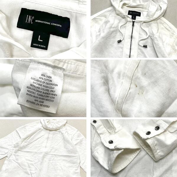 1点物◆リネン素材アノラックパーカー白プルオーバージャケット古着メンズLレディースOKアメカジ90sストリート/スポーツ中古アウター348214