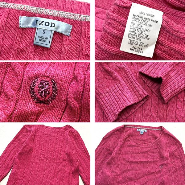 1点物◆アイゾッドIZODケーブル編みニットセーター古着メンズレディースOKアメカジ90sストリート/スポーツUSAブランドSMLピンク348237 | 古着屋カチカチ 東京都北区 JR王子駅前で実店舗展開中 通販もOK Tokyo Japan
