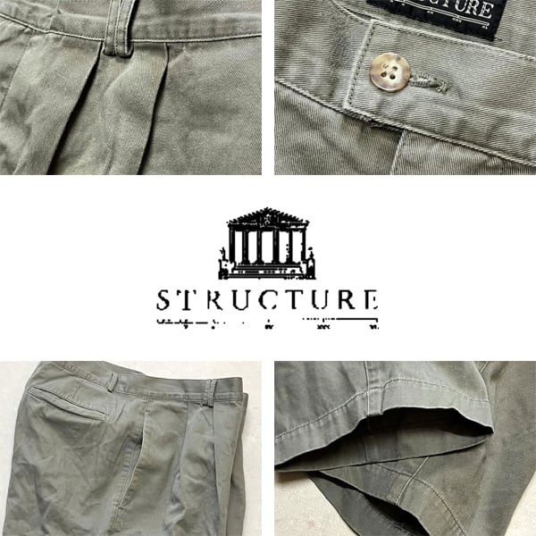 1点物◆ストラクチャー2タックSTRUCTUREワイドチノパンッ古着メンズ33レディースOKアメカジ90sストリートUSブランド中古スラックス348324