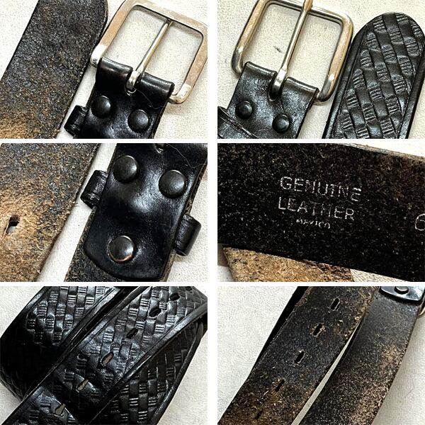 1点物◆メキシコ製ビンテージ黒バックル付き型押しレザーベルト古着メンズ32レディースOKアメカジブランド90sストリート/スポーツXL348378